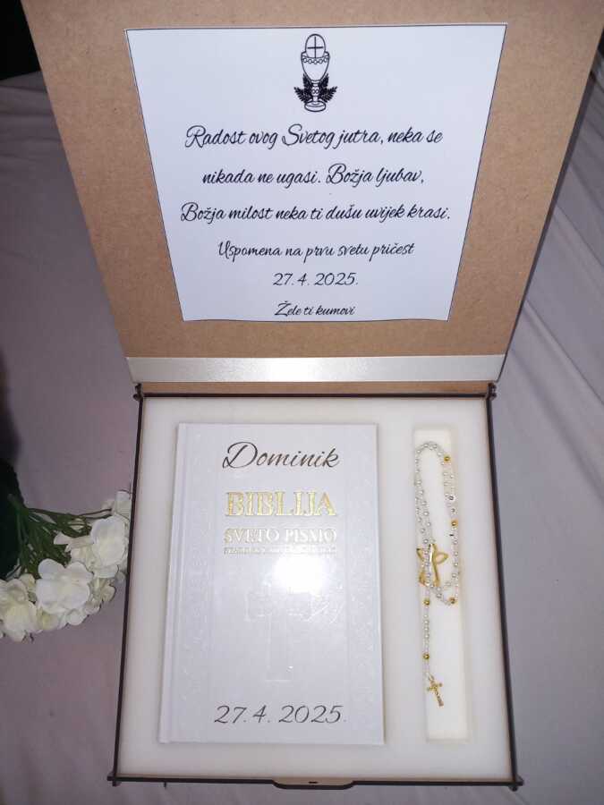Sadržaj: Biblija – 26cm Velika krunica Veličina kutije 30x30cm