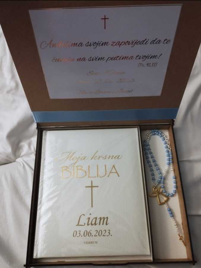 Poklon kutija velika krsna Biblija i personalizirana krunica