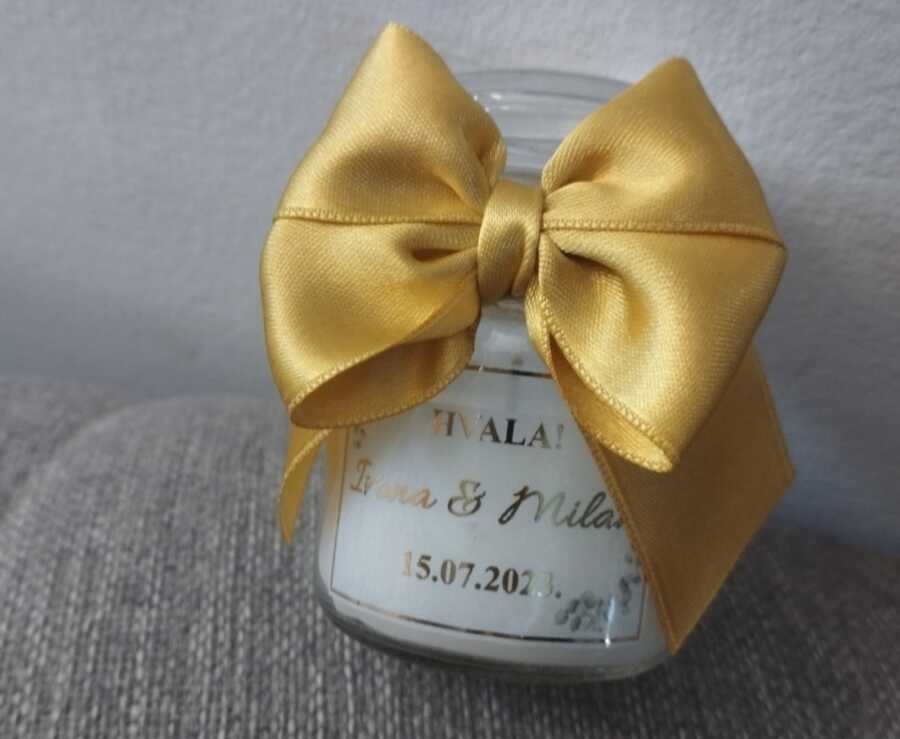 Svijeća u staklenci dimenzija 8×5 cm s mašnom.